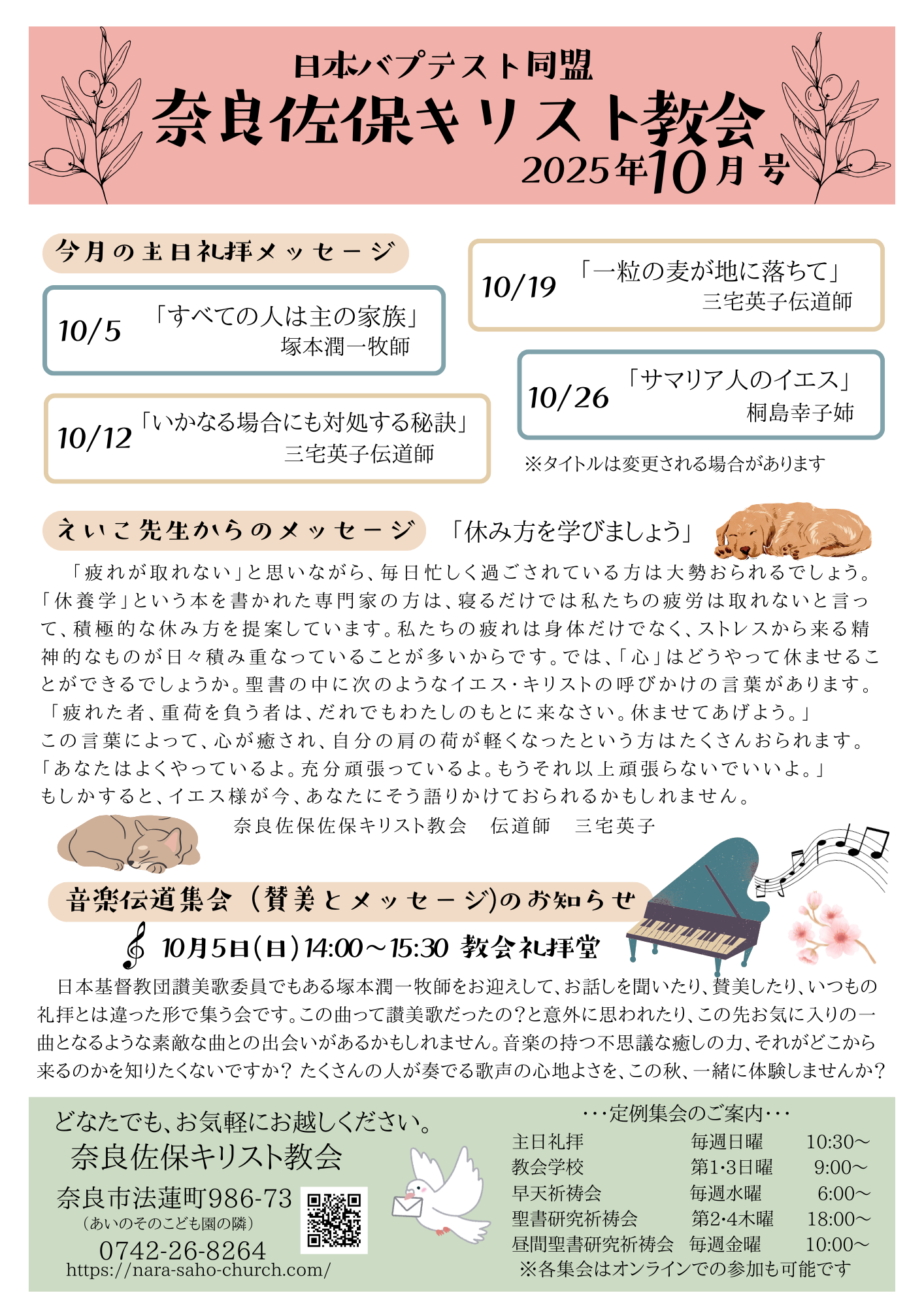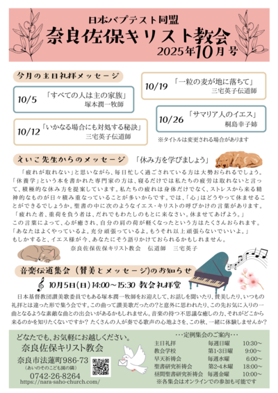 ようこそ、奈良佐保キリスト教会のホームページへ。